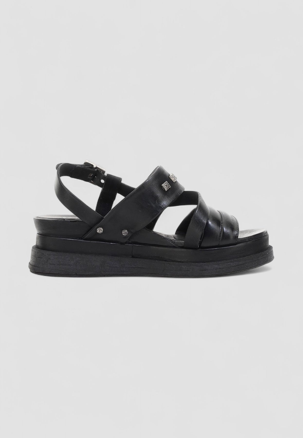 Sandalias Italianas, 100% cuero con detalle de hebilla y tacón tipo cuña. Hechas a mano con una plataforma cómoda que da altura y estiliza.