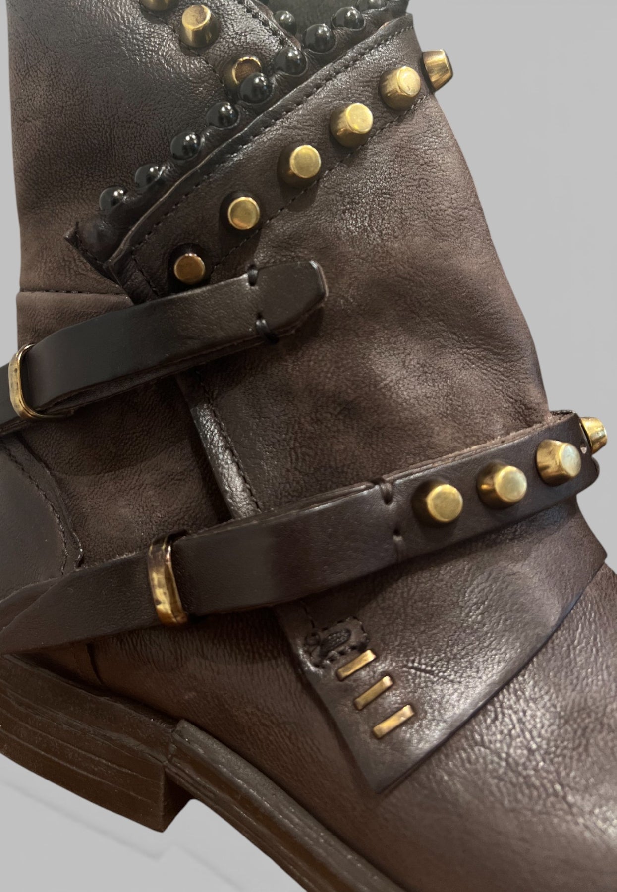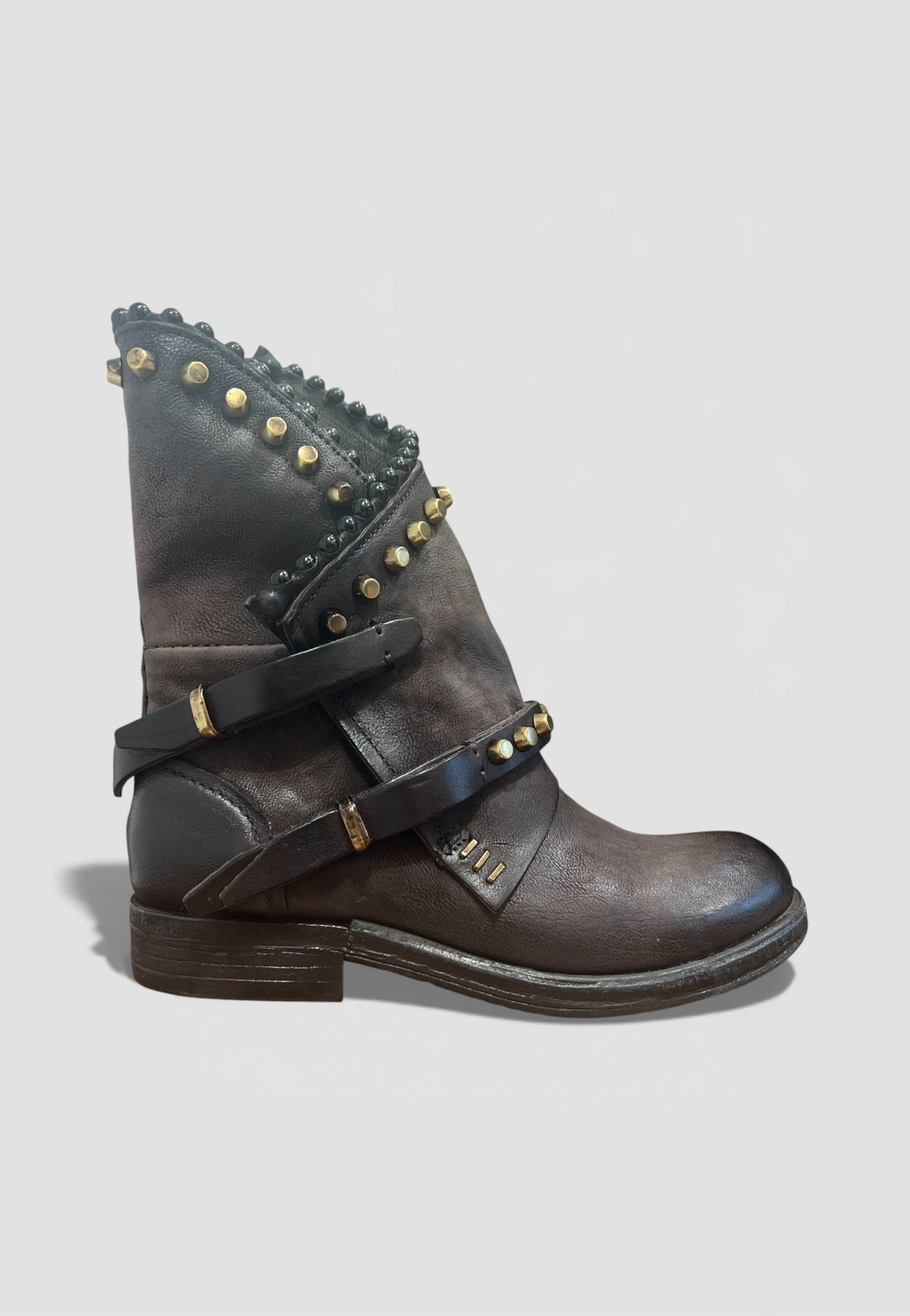 Estos botines italianos confeccionados en 100% cuero, hechos a mano, representan a la perfección el ADN A.S.98: un estilo rockero, jugado y auténtico, con hebillas, tachas y detalles exclusivos que transforman el diseño en una pieza protagonista.